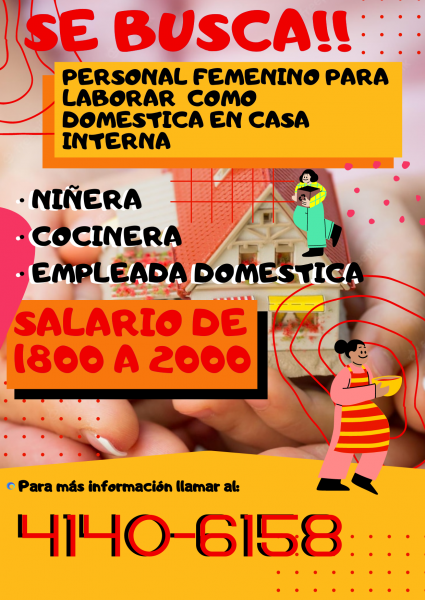 Mujeres honradas, amables, pacientes, dedicadas y responsables sobre todo que les guste la cocina y la limpieza o estén dispuestas aprender....